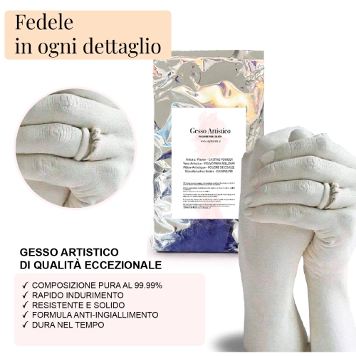 I materiali utilizzati sono di prima qualità, adatti per stampi in gesso 3D, calco mani e piedi, impronta bambino o adulto.